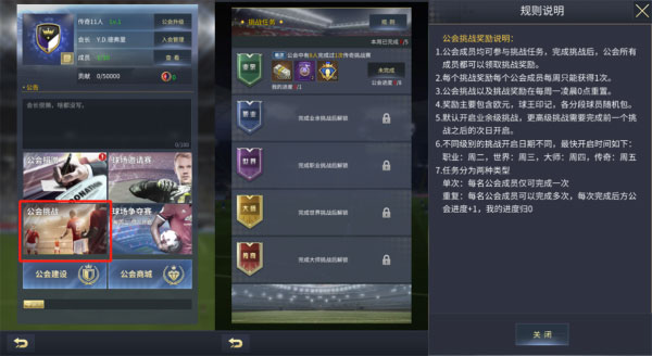 你的传奇之路上怎能少了并肩作战的快感,公会挑战让你们的凝聚力爆表!通过公会成员共同努力完成各档的挑战任务,一但任务达成全公会的成语都可以领取相应的奖励,下一阶段的挑战也将于次日开启。每周一凌晨0点,进度将重置,开启新一周的挑战!