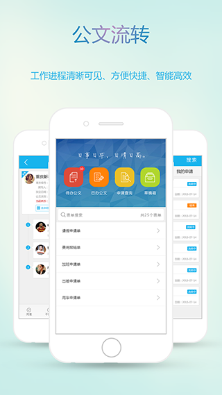 2、可实现移动端app实时审批流程,所有工作表单都支持手机填写、提交、审核操作