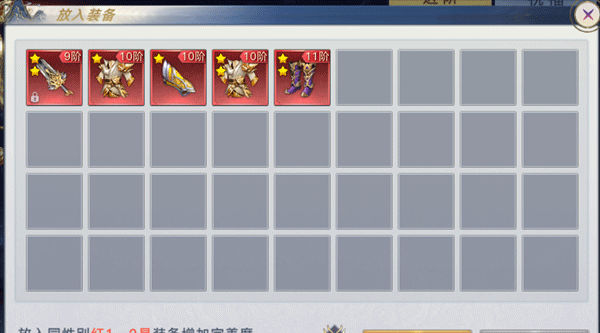 可使用道具【混元石】+红1、2星装备进行神格升阶;每选入一件装备可增加完美度,达到100%以上完美度才能放入进行进阶。