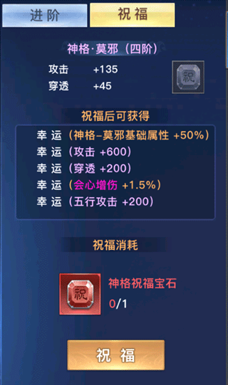 各类名器的神格可使用【神格祝福石】进行祝福,祝福后可获得大量属性增幅,各位上仙大人在神域获取祝福石后记得使用呀。
