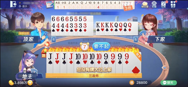 经典+癞子玩法,全民牌技PK,抢地主,明牌,加倍等玩法,对局乐趣精彩不停。