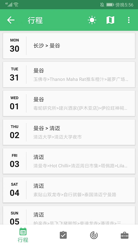 1、进入到穷游行程助手界面,然后选择右下角“加号”图标,