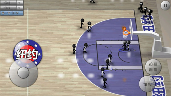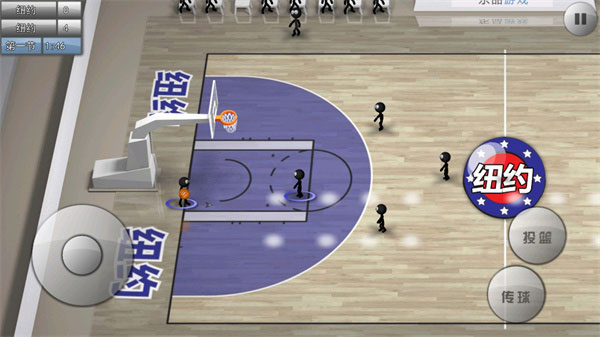 3、赛事中根据虚似遥杆控制火柴人灵便跑位,2个功能键的功效依据防御转换可进行传接球、投球、转换、断球、篮板,让简易的实际操作就能控制多种多样的动作,游戏玩家能够轻轻松松的感受比赛快乐;