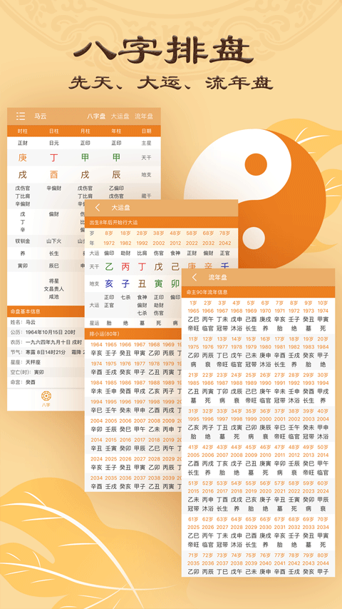 根据先天、大运、流年盘等相关知识推算出命运排盘。