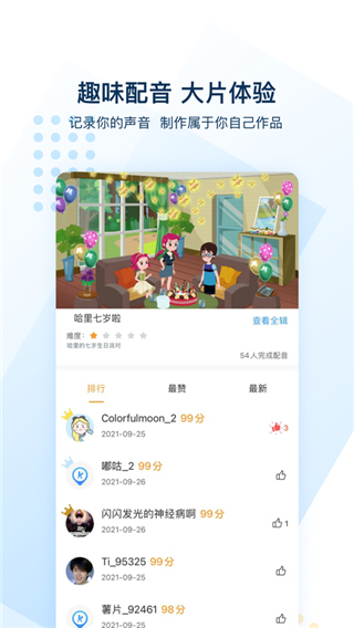 趣味配音:精选电影、动漫片段,您也可以玩配音当主演,有效记单词和练口语。