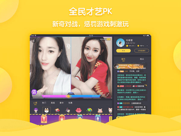 我们有数量:每天2000个新主播,7*24小时全天互动直播不停歇。