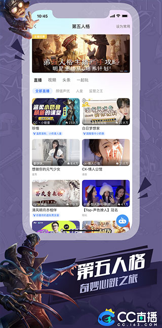 cc直播苹果版是网易官方针对苹果ios平台而推出的手机客户端,该客户端是网易推出的目前互联网上最主流的游戏语音娱乐平台,游戏直播、美女视频,娱乐K歌应用尽有,并且界面简洁易用,可以让玩家和主播们随时随地聊天,随时随地观看娱乐&游戏直播。目前全新的网易cc直播苹果手机版为用户提供了游戏直播、游戏录像、美女直播等服务,包括梦幻西游、大话西游、炉石传说等游戏直播,热门游戏录像,美女视直播频聊天交友、视频K歌等,各类精彩节目任你观看,致力于为广大游戏玩家、在线语聊爱好者提供安全稳定、语音流畅、音质清晰的语音服务,更有各路游戏大明星,帮你解读游戏攻略,教你如何从小白走向大神,快下载体验吧。