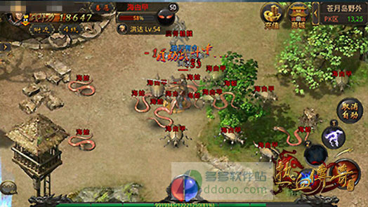 苍月岛野外存在大量的50级海蛇,腐骨骷髅等怪物,可以在野外打怪升级,这个阶段比较适合接近50的玩家挂机。
