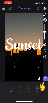 点击橡皮擦,适当缩放画笔大小,双指放大背景图,在文字图层上擦除与建筑的重合部分。