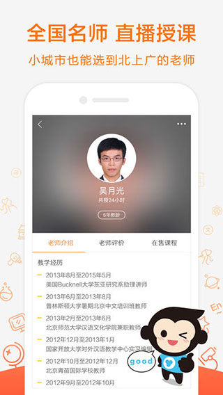1、全国名师随你挑选:名校背景、资深教龄、竞赛获奖的老师在线授课,不合适随时调换