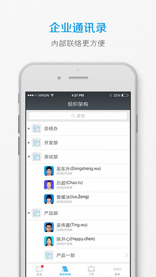 - 组织架构,把企业通讯录装在手机里,找人更容易