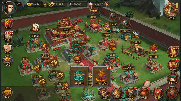 横扫独创内政系统,玩家可通过皇城争霸公平竞技夺取本国官职,并可获取战争指挥权限;同时主城内置建筑经营体系,包括征收资源、招募将领、兵营科技等全套体制,江山社稷由你一手布局。