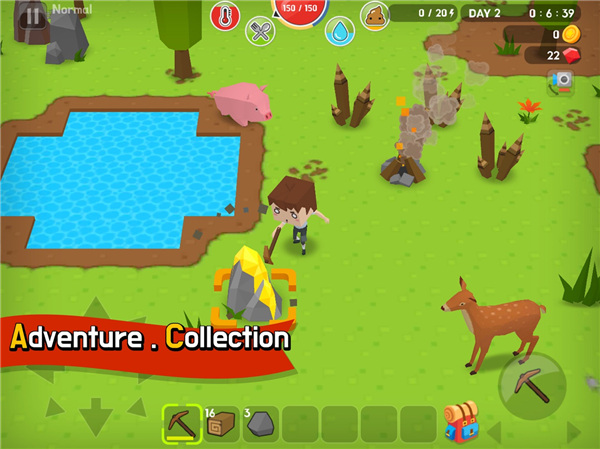 生存世界的具体玩法与其他同类沙盒游戏类似,没有什么太大区别,难度也不大,操作简单,易于上手,玩家在游戏中需要不断探索,开采矿物,研究工艺和武器,建立农田使用陷阱,通过它们保护自己免受僵尸的袭击,从而生存下去。玩家可以在这里通过方块拼凑宏大的想象世界,创造出内心最纯真的幻想的天马行空、无忧无虑幻想地,不仅带给自己一种视觉上的享受,更有着无与伦比的成就感。